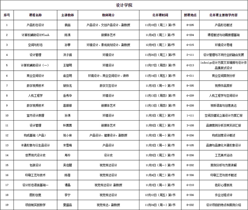 设计学院2025-2026学年第一学期“一师一金”公开课安排表