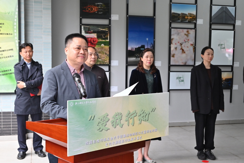 刘星喜书记在致辞中指出出建设美丽中国,是习近平总书记念兹在兹的“国之大者”。党的二十届四中全会明确提出要“增强绿色发展动能”,建设美丽中国。高校肩负着为党育人、为国育才的重要使命,是开展生态文明教育、树立生态文明观的主阵地。在学院的绿色校园文化长廊启用之际,向全体师生提出三点希望:一是执文化之笔,用镜头讲好行知故事;二是燃理念之灯,用创意点亮发展方向;三是走实践之路,用行动共筑绿色新篇。